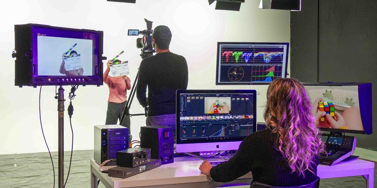 All’interno del Teatro di posa le nozioni studiate in aula diventano subito esperienza concreta: si impara facendo. Ogni studente può gestire riprese, luci, montaggio, effetti visivi e post-produzione grazie a postazioni software e hardware avanzate per editing video, audio, color grading, VFX e videomapping. Un luogo dove creatività e tecnologia si incontrano e si trasformano in progetti reali.